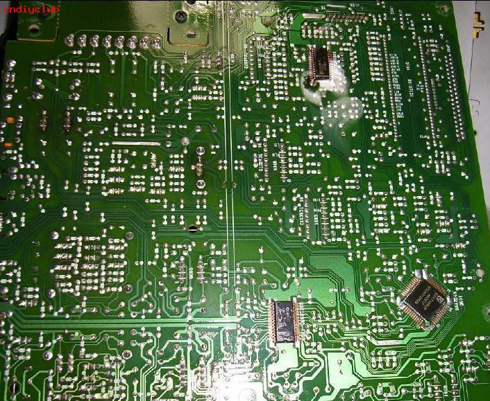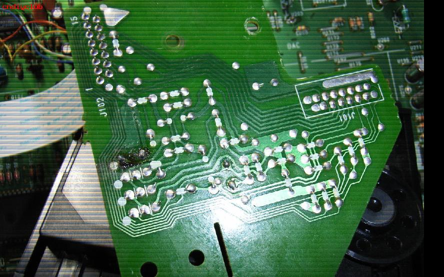 我北京马兰士cd维修站接修一台马兰士CD-63音响故障为不读碟先打开外壳。看到主板。放碟子试了一下,发现不转。退出碟子,看看光头。有聚集动作。不管那么多,拆下光头测试。我的土方法――专门测试装置一个电池+一个光头的座子+个电阻。将光头插上座子,光头有光说明发光管好的。说明另人原因。此机的伺服是TDA1301的。但是此机的设计有点奇怪,RF放大不用TDA1302,而是用了分立的器件,而且还有一个专用的HF-AMP小板,小板再通过排线与主板连起来。