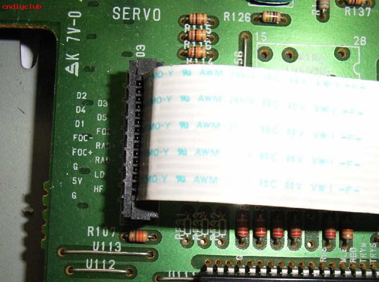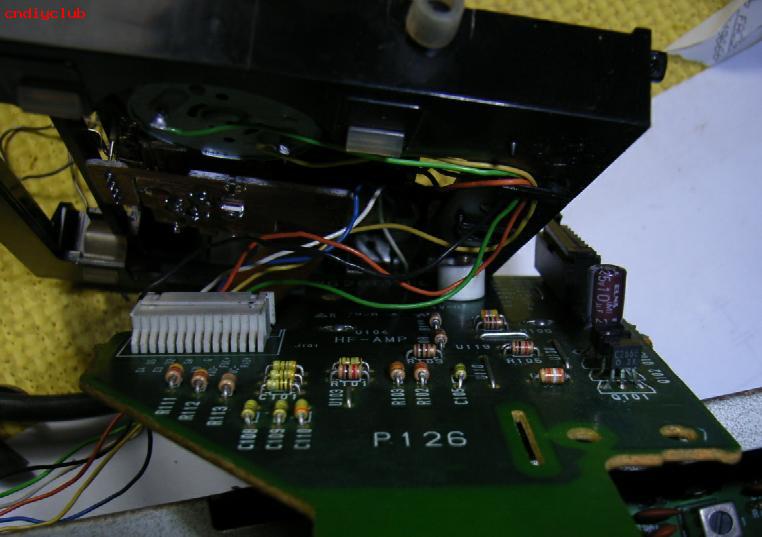 这给修带来了麻烦,因为-这样翻动光头可能拉断光头的排线。所发只好在光头总成上打个M3。2的洞。再用M3的螺钉把HF-AMP小板和光头总成固定在一起。这样修起来就方便多了。