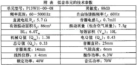图2是该单元在无限大障板上的幅频响应和阻抗曲线图。从图中可以看出其响应非常平直,它的相关单元技术参数见附表。
