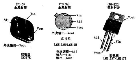图1给出了几种常用(不同封装形式)的LM317的外形及引脚排列图。