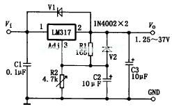 原理图见图3。改变R1和R2的比值可使输出电压在1.25-37V之间连续可变。