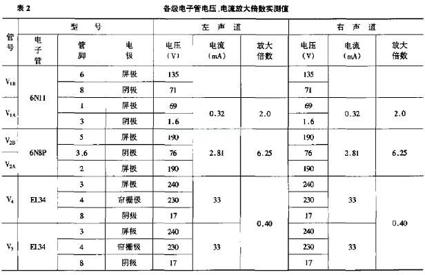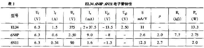 调整工作点,要根据《电子管》手册上提供的数据,作为电子管机电路调试的依据。本机所选用的EL34、6N8P、6N11电子管特性如表1所示。