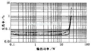 图8为总谐波失真曲线(左声道,右声道与此十分相似)。20W输出时20Hz、1kHz和20kHz失真基本上<0.1%,十分优良。在削波之前这些失真基本上是二次谐波分量。可以说,LM1875的设计是相当优秀的。