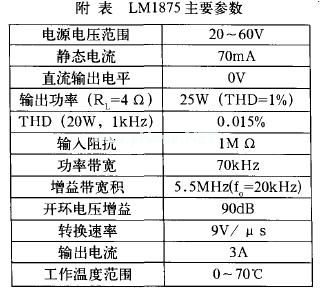 LM1875是美国国家半导体公司(NS)在十多年前推出的性能优异的单片集成功率放大器件。它的主要参数见附表。