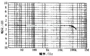 本机实测增益27dB,两个声道同时工作,输入635mV时,8Ω负载上输出14.2V,合输出功率为25W。图7为频率响应,从5Hz~50kHz完全平直,150kHz时为-1.5dB。