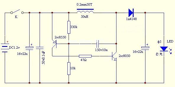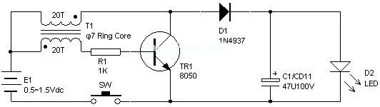 1、1.5V低成本LED驱动电路