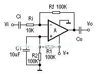见附图。同相交流放大器的特点是输入阻抗高。其中的R1、R2组成1/2V+分压电路,通过R3对运放进行偏置。
