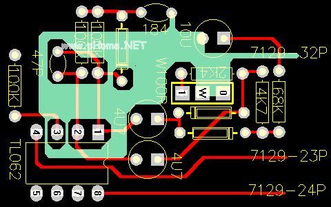 运算放大器反馈电阻仅仅是 2*100K ,没有使用大的 MΩ 级电阻。两只 4u7 和一只 10u 电容器也是普通电解电容器,注意接入的极性。