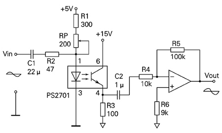 采用PS2701有较好的线性度,输入信号的频率可在音频范围。