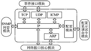 结合对嵌入式IPv6协议栈设计要求和分层结构的全面分析,将设计实现划分为4个模块,如图4所示。