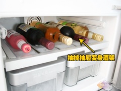 零度保鲜抽屉可全部取出,中层特设波浪式的酒瓶搁架,保鲜室摇身一变成小型专业酒窖,为您的爱酒提供最专业的贮存环境。
