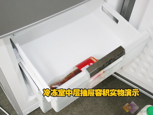 为了使大家能够更直观的了解到冷冻室抽屉的容积,在评测过程中特用实物来进行比对。