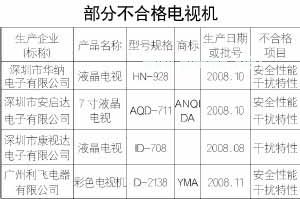 记者日前从质检部门获悉,一些不法厂商盗用“家电下乡”的名义,利用低价回收废旧彩电,经过简单翻新后出售牟取暴利。据广东省质监局披露,在3·15前夕开展的质量检查专项活动中,质监局人员抽查了30家企业生产的电视接收机产品37批次,经检验,合格33批次,合格率为89.19%,较2007年相比提高了近1倍,但仍有超过一成的电视机质量存在问题。