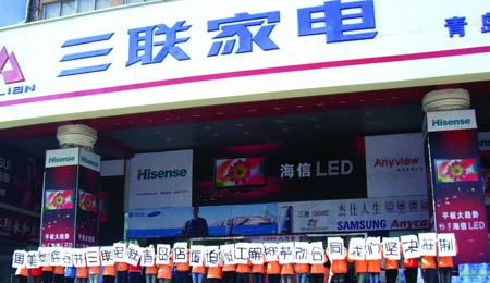 20日,三联商社青岛店员工举行了相当规模的抗议行动。经济导报记者从青岛店内部人员处获悉,抗议的起因是国美电器在2月13日承租三联商社青岛店一多半物业之后,近日图谋解散三联商社青岛店,把三联商社青岛店完全转交国美电器经营,同时遣散该店的绝大部分员工。