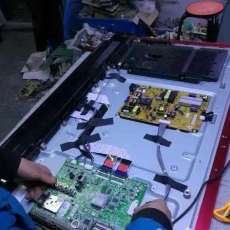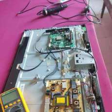 | LC320WXE-SBV2液晶屏是一款低成本的国产屏,如图1所示,其面板尺寸为31.5英寸,分辨率为1366x768, 上屏电压为+12V,内部安装有10只EEFL灯管,已广泛用于创维、康佳、TCL等品牌液晶彩电中。 值得一提的是, 该型液晶屏的后壳不是金属材料,而全是塑料,如图2所示。这样设计虽降低了成本,但失去了电磁屏蔽作用,屏内灯管工作时产生的电磁干扰极易导致主板或逻辑板工作异常,从而出现各种怪现象,如:无规律死机、图像闪烁、图像上有千扰条纹黑屏等。如不了解这一特点,检修极易走弯路。 笔者是在检修一台创维32L01HM液晶彩电(8M19机芯)时,才第一次见到该型液晶屏。该机故障现象是:二次开机,屏显开机画面后随即死机,几秒钟后又自动重启,在此期间指示灯一直为绿色,遥控、键控均失灵。 测得电源板输出的5VSB、12V和24V电压均正常且稳定,PFC电压约为386V,正常,这基本排除开关电源有故障的可能性。接下来测量主板DC-DC变换电路输出的5V、3.3V、2.5 V、1.8V等电压,均正常,怀疑主板上的控制系统或程序数据有问题。 网购一块同型机主板( 拆机件),将新主板置于一块较厚的泡沫塑料上连好线试机,能顺利开机,出现了图像声音,但图像上有几根较细的白条,当时以为是上屏线没有插好,这时判断原机主板已坏,于是拆下原机主板,固定好新主板试机,仍然死机,这真奇怪!拧下固定螺钉,再将新主板置于泡沫塑料上,又能正常开机了。是不是主板不能与屏靠得太近呢?再换回原机主板,并将主板远离液晶屏放置试机,一切正常。这说明故障原因并不是主板有问题。该机所用液晶屏型号正是L320WXE-SBV2,后壳全是塑料,怀疑屏内灯管工作时产生了较强的电磁干扰,影响了主板的正常工作。换新主板时,图像上有几根较细的白条应是干扰条纹。找来修冰箱用的铝箔带,贴在主板对应位置的屏后壳上,贴了两三层后试机,故障排除。 为了提高整机的抗干扰能力,顺便在电源板与逻辑板对应位置的屏后壳上,也贴上了铝箔带。 后来又接修一台创维32S16iw彩电,图像上有时隐时现的移动的横线或彩色横带,并且图像也有闪烁现象,有时开机后刚出现厂标就黑屏。拆开后壳发现,该机所用液晶屏型号是LC320WXE-SBV2,有了上一次经验,如法炮制,在主板、逻辑板对应位置的屏后壳上贴上铝箔带,故障排除。 海信TLM32H78,TLM32V68A等型机也采用了该型液晶屏,其常见故障有:1.图像闪烁,且图像上有千扰横条;2.蓝灯亮,屏,上只有一个角亮或者全不亮;3.背光不亮或者亮一下就熄,但伴音一直正常。这些故障的原因是逻辑板(T-CON)受到了屏内灯管工作的干扰,同时灯管冷机时启动不畅,其处理办法如下: 拆开液晶屏,每根灯管下方有一根铝箔条,如图3所示,取下灯管,并拆除铝箔条,如图4所示,然后再安装好灯管。在焊接灯管灯头引线时,应套上热缩管,并确保焊点圆滑且牢靠,以防灯管插头接触不好而打火。 接下来从逻辑板板下方的一小孔中,穿人一根导线,导线一端接电源板上的冷地,另一端置于灯管下方的塑料背板上,并剥掉伸人屏内部那段导线的塑胶外皮,并让金属丝全部散开,然后在屏后塑料背板上贴满铝箔带,不留缝隙,并让铝箔带贴牢金属丝,以保证两者接触良好。新贴铝箔带的左右两侧不要超过原铝箔条的位置,以防因离灯头太近而打火。贴好铝箔带后装好液晶屏即可。 接地线是为了防止灯管对铝箔放电而出现背光闪烁现象(表现为图像闪烁),贴满铝箔带的目的是为了让灯管在冷机时能顺利启动。 |