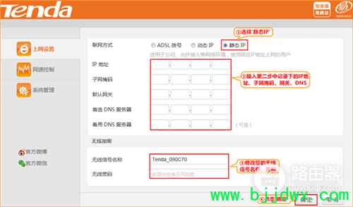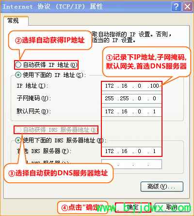 | 第一步:连接好线路 直接将入户的网线(没有猫的用户)或者猫出来的网线(有猫的用户 )接在路由器的WAN口,再找一根短网线,一头接电脑,一头接路由器1/2/3任意接口,接线方式如下图: 注意:路由器正常工作状态是指示灯SYS闪烁,WAN口常亮或闪烁,1/2/3口中与电脑相连的端口常亮或闪烁。 第二步:记录下电脑当前IP地址并将IP地址改为自动获取 将电脑上的本地连接IP地址设置为“自动获得IP地址” 1、右键点击桌面上的“网上邻居”,选择“属性”: 2、右键点击“本地连接”,选择“属性”: 3、双击“Internet 协议(TCP/IP)”: 4、记录下当前电脑的IP地址,然后选择“自动获得IP地址”“自动获得DNS服务器地址”,点击“确定”: 第三步:设置路由器上网 1、在浏览器中输入:192.168.0.1 按回车键,在跳转的页面中点击“静态IP” 第四步:试试电脑可以上网了吗 设置完成后,就可以浏览网页了。 温馨提示:如果还有其他电脑需要上网,直接将电脑接到路由器123任意空闲接口,参照第二步将本地连接改成自动获取IP地址即可,不需要再去配置路由器。 |