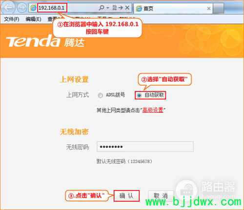 | 第一步:连接好线路 直接将入户的网线接在路由器的WAN口(蓝色),再找一根短网线,一头接电脑,一头接路由器1/2/3任意接口(黄色),接线方式如下图: 注意:路由器正常工作状态是指示灯SYS闪烁,WAN口常亮或闪烁,1/2/3口中与电脑相连的端口常亮或闪烁。 第二步:配置好电脑 将电脑上的本地连接IP地址设置为“自动获得IP地址” 1、右键点击桌面上的“网上邻居”,选择“属性”: 2、右键点击“本地连接”,选择“属性”: 3、双击“Internet 协议(TCP/IP)”: 4、选择“自动获得IP地址”“自动获得DNS服务器地址”,点击“确定”再点击“确定”即可: 第三步:设置路由器上网 在浏览器中输入:192.168.0.1 按回车键,在跳转的页面中选择“自动获取” “确认”即可 第四步:试试电脑可以上网了吗 如果WAN口状态显示“已连接”,就可以浏览网页,上网冲浪了。 温馨提示:如果还有其他电脑需要上网,直接将电脑接到路由器1234任意空闲接口,参照第二步将本地连接改成自动 获取ip地址即可,不需要再去配置路由器。 |