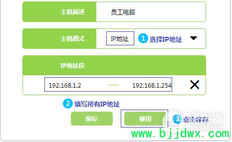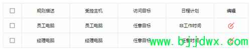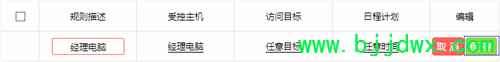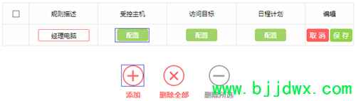 | 1、登录路由器管理界面,点击 高级设置 >> 上网控制 >> 行为管理,进入设置界面。 2、设置经理(主机)上网规则:在设置界面点击 添加,添加经理电脑的访问权限。点击受控主机栏的 配置,如下图: 3、受控主机可以是主机的MAC地址或IP地址,此处添加经理电脑的MAC地址,如下图: 4、访问目标即可以访问的网站地址,您可以结合实际需要填写访问目标,本例中经理可以访问 任意目标,点击 使用,如下图: 5、经理可以在任意时间访问任意网站,所以选择 任意时间,如下图: 6、添加经理电脑规则完成后,点击 保存,如下图: 从以上规则可以看出,我们可以针对某台电脑的MAC地址设置某个时间段允许/禁止访问特定的目标,请结合您的实际需要进行设置。 7、设置员工(副机)上网规则:您可以通过IP地址来限制某台电脑的权限,此处使用IP地址段限制所有员工,如下: 温馨提示:此处IP地址段虽然包含经理的IP地址,但经理的规则在前,所以不冲突。 8、添加员工在非工作时间可以访问的目标,本例中员工可以访问任意目标,如下图: 9、添加员工的非工作时间段,如下: 保存配置。配置完成后规则如下: 10、过滤规则选择 仅允许规则列表中的上网行为(表中的规则允许,其他不符合规则的均不允许通过),启用行为管理。 至此,上网控制规则设置完成,经理电脑上网不受限制,员工电脑在工作时间无法上网。 |
