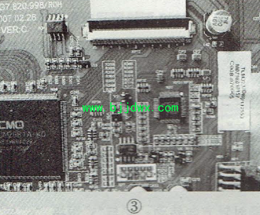 海信TLM3233D液晶电视故障检修两例 例1:开机出现Logo后黑屏,但伴音正常。 分析检修:拆机检查,发现电源二合一板上的电容C710、C712~C714、C719鼓顶,一一换新后试机,故障依旧。黑屏时,测得BL-ON信号电压一直为4.5V,正常,说明故障与主板无关,一般是背光过压、欠压保护所 致。用一只150kΩ/20W电阻做假负载,分别代替六只灯管试机,仍黑屏,说明故障在二合一板上的背光部分。 该机有三只高压变压器T1~T3,每只变压器有两路高压输出,如图1所示。检查发现,T2的一只引脚发黑,用万用表测量T2的两个高压绕组阻值,一个为1.75kΩ,而发黑引脚所接绕组阻值为∞,说明该高压绕组已开路。更换T2后试机,故障排除。 例2.图像花屏,如图2所示,声音正常。 分析检修:该机主板、逻辑板合在一起,其伽马校正块型号为AS15-G(N32),如图3所示。根据经验,此rc故障率较高,手摸N32温升较快,确认N32己损坏。将N32换新后试机,故障排除。 |