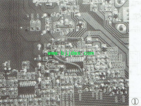 长虹LT24610X液晶彩电背光故障应急维修 一台长虹LT24610X型液晶电视,二次开机后电源指示灯闪烁几下后熄灭,无光栅、无图像,伴音正常。 拆开机壳,目测电源二合一板(板号为:FSP090L-3HFOl)无明显异常。上电后测得该板输出的5V和24V电压均正常,判断故障出在背光电路或背光灯管。断电,用自制的灯管测试仪检测三根背光灯管,发现中间的青光灯管不亮,其余两根灯管发光正常。检查到此,判断故障系中间的灯管损坏导致背光保护电路动作所致。由于没有此规格的灯管,加之更换灯管需拆液晶屏,存在风险,决定用取消背光保护的方法来应急维修,具体方法是:用一根导线将背光控制块IC302(LX6312CD)的⑦脚与地短接,如图1所示。焊接完毕,将电源二合一板装回电视机,恢复各接插线。通电试机,电源指示灯亮,按下"待机"键,电源指示灯闪烁几下后熄灭,光栅出现,输入视频信号,图像正常,故障排除。 编后语:在检修液晶彩电背光电路时,不可轻易取消保护电路,尤其是在未查明故障原因前,因为取消保护电路后极易导致故障扩大。 在本例检修中,作者取消保护电路虽属应急维修,但不值得推荐,建议作者早日更换灯管,并恢复原保护电路,从而保证原机的可靠性。 |
