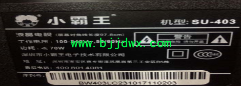 小霸王液晶电视工厂调试方法 机身号:如图BW代表生产厂家;403代表机型;LC2代表屏条码,310代表主板条码;17代表年份;11代表月份;0203代表生产台数序号如上图:17年11月 第203台机器 一、在主界面再按菜单再按1147进入工厂模式 (注意:一般不要随意调试,会影响到观看画质图像) 三、小霸王产品软件识别及升级方法 例如:双击打开SU-323 软件.zip解压出 YUGUO_LDDH310A48_V310_1024M_8G_52_003_600MA_600MA_255P.bin升级文件考到U盘,再把考好的升级U盘插上电视的USB接口上,再插电源上电再按遥控器上的电源键进入开机升级模式升级到100%升级完成,再把U盘拔出重新上电再按遥控器上的电源键进入开机系统。(升级时蓝灯会闪) 例如:双击打开7320 软件.zip解压出SKR_30.bin升级文件 考到U盘,再把考好的升级U盘插上电视的USB接口上,再插电源上电进入升级模式升级到100%升级完成,再把U盘拔出重新上电再按遥控器上的电源键进入开机系统。(升级时蓝灯会闪) 例如:双击打开5088-5588 通用软件.zip解压出 allupgrade_v510_8G_1G_44.bin升级文件考到U盘,再把考好的升级U盘插上电视的USB白色座子接口上,再插电源上电进入升级模式升级到100%升级完成,再把U盘拔出重新上电再按遥控器上的电源键进入开机系统。(升级时蓝灯会闪) 四、小霸王产品第三方软件安装方法 例如:把第三方软件APK考到U盘,再插上机器USB端子,再进去机器的应用找到这个APK按OK键完成安装就可以用了 五、小霸王产品快速维修方法 一、不开机屏不亮: 检查开关,电源线是否开插好 二、开机白黑屏:检查屏线是否插好到位 三、有图像无声:检查喇叭和线是否插好到位 四、遥控不灵敏:检查电池是否有电 五、屏有线闪:检查主板和屏是否线头接触不好,(可以替换法) 六、wifi连不上网:检查WIFI账号和密码是否正确 七、网口连不上网:检查网线是否插好到位 六、小霸王产品维修注意事项 一、机器有对应的软件,不需要调机器工厂菜单参数,升级软件就可以。(注意:报机器型号后贴条码) 二、机器出现什么问题故障坏了,要报写上机器型号、配件名称和配件规格条码。 三、机器出现故障拆机器时,要注意拆下来的螺丝不要乱放,机器修好时,螺丝不要乱打要记得拆那个位置的螺丝打会原位。(注意:打错螺丝会出现其它故障) 四、机器要轻拿轻放,拿机器时手只要拿住屏框就可以不要拿到屏,(注意:拿机器时手不要碰屏这样屏会破,) 五、机器脏不要用水抹,要用抹机水倒在干抹布在抹机器。 六、机器屏不要用硬的物体碰到这样会破屏。 七、机器屏出现故障问题要分析是否是屏坏还是其它问题。(注意:要验证屏是不是屏坏) 八、机器出现什么问题故障都要分析那个元器件出现问题。(注意:要验证那个问题才报配件) 七、小霸王产品机型及对应方案 机型: 方案: 5088、5588、50T6500、55T6500 海思510 1G+8G Hisi 323、403 海思310 1G+8G 7320、40T720、3288 方案RDA-8501-SKR_819. |