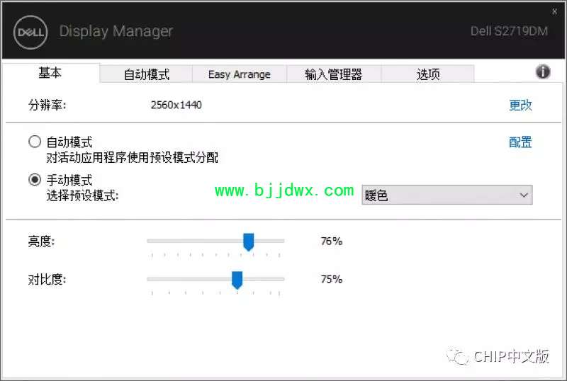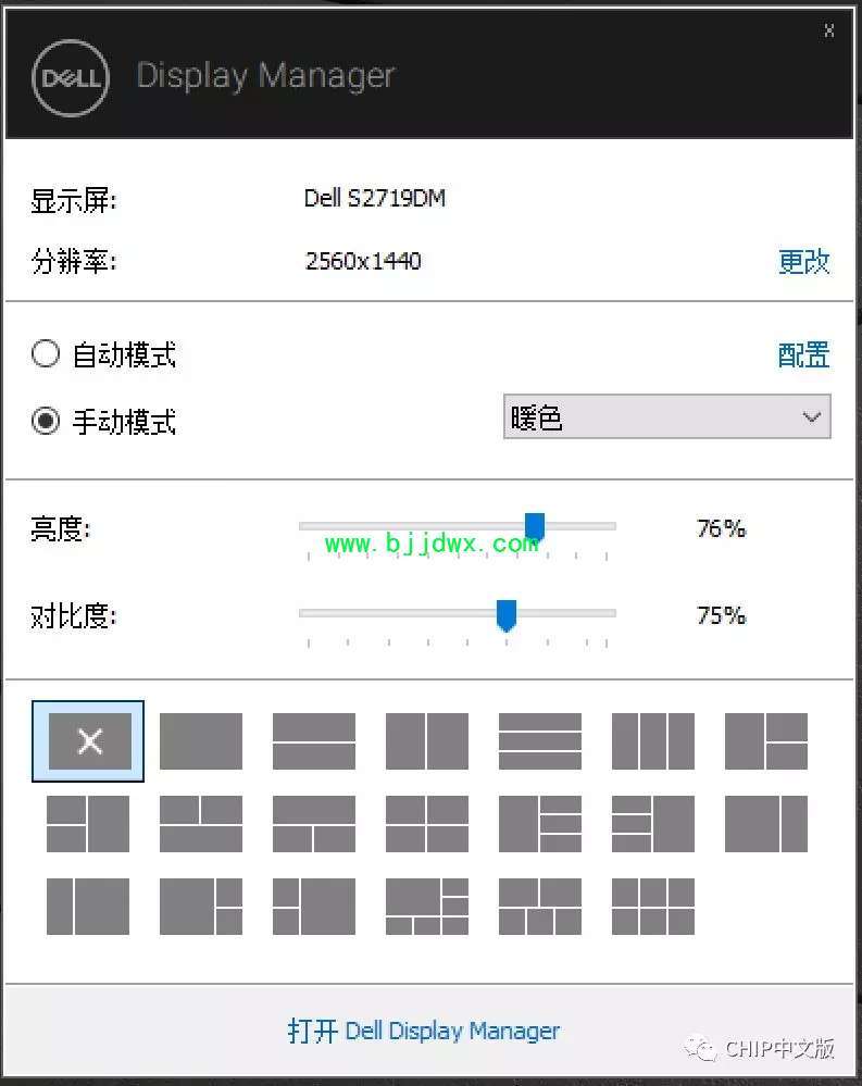 作为电脑的几大件之一,显示器相比每次更新必换的CPU和显卡,可谓是价格不低但更新频度更低,甚至在前两年的尺寸升级、分辨率升级之后,这两年陷入了无可升级的地步,剩下的就只有不断的降低价格了。 显示器是让不少PC用户又爱又恨的“大件”,便宜到地的可以不足千元有个27英寸Full HD的大面子,但是分辨率就那样、看片就那样、游戏也就那样。而假如对显示器有一些追求的话,不仅$$大大增加,而且显示器的“高端”取向非常多,难有同时满足画质、速度和美观等多重需求的产品,直到戴尔S2719DM的出现。 27英寸,对多数用户来说,已经是空间和使用感受的极限尺寸。但是对27英寸的显示器来说,1080p分辨率的画面太过粗糙——点距超过0.3mm;4K分辨率又太过细腻,Windows 10需使用150%缩放,同时4K内容对PC性能的要求更高,不少系统都跟不上。作为折中,2.5K分辨率、0.233mm点距,即2560×1440目前更为实用。由于27英寸4K显示器市场接受度不高,市场上甚至出现了使用4K面板降级为2.5K面板使用的情况,但这种方式会影响画面质量。 戴尔S2719DM采用原生QHD(2560×1440@60 Hz)的IPS面板,支持AMD FreeSync自动同步特性。当然,这是需要高性能的AMD显示卡支持,从而实现最高144Hz的刷新率。需要说明的是,由于该机只带有两个HDMI 2.0接口,因此并不支持VESA的Adaptive-Sync——虽然该技术与FreeSycn兼容;同时该机Windows最高刷新率为75Hz,不玩游戏也能享受福利。 除了刷新率,S2719DM还带来了另一项热门技术——HDR。该机提供的原生亮度为350cd/m2的亮度,HDR亮度为600cd/m2,通过DisplayHDR 400认证。实际测试中,设备初始化亮度为75%,微调至76%就是250cd/m2的标准亮度;同时其初始化色温为6900K,设备预置的暖色方案即为6500K。非专业用户无需复杂的显示器调试,就能获得比较合适的参数配置。 除了可以使用隐藏在机身右下角下框上的按钮操作、OSD提示之外,S2719DM支持软件参数控制,该功能对中高级用户依据喜好或应用设置显示器参数非常有帮助。要获得这个功能,需要单独安装戴尔Display Manager管理软件和S2719DM驱动程序——对应加载参数配置和色彩配置方案。该软件可以提供比Windows显示器设置更加灵活的多窗口布局,同时可自动为不同应用调整窗口或全屏色温,免去了每次都要切换的烦恼。 |