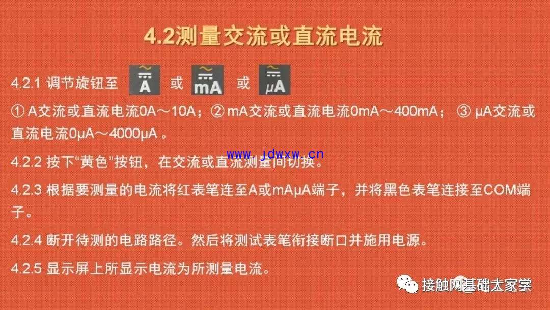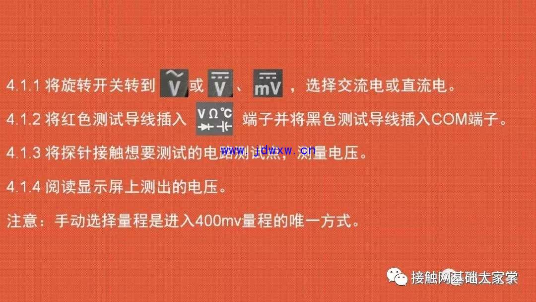 1 使用前的检查及准备 1.1在使用万用表前,请检查机壳。切勿使用已损坏的万用表;检查是否有裂纹或缺少塑胶件;特别注意接头周围的绝缘。 2 使用注意事项 2.1 请勿在连接端子之间或任何端子和地之间施加高于仪表额定值的电压。 2.2 对30V交流或60V直流以上的电压,应格外小心,这些电压有电击危险。 2.3 测量时请选择合适的接线端子、功能和量程。 2.4 请勿在有爆炸性气体、蒸气或粉尘环境中使用。 2.5 使用测试控针时,手指应保持在保护装置的后面。 2.6 进行连接时,先连接公共测试表笔,再连接带电的测试表笔;切断连接时,则先断开带电的测试表笔,再断开公共测试表笔。 2.7 测试电阻、通断性、二极管或电容器前,应先切断电路的电源并把所有高压电容器放电。 2.8对于所有功能,包括手动或自动量程,为了避免因读数不当导致电击风险,首先使用交流功能来验证是否有交流电压存在。然后,选择等于或大于交流量程的直流电压。 2.9使用完毕后,将万用表档位旋转至“0FF”处,关闭万用表。 |