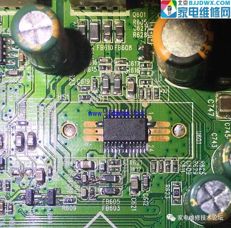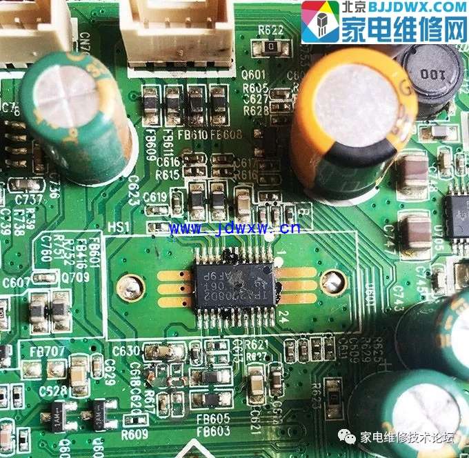 雷击故障大家都见过,这是一台人为损坏的机子,人击! 故事是这样的,用户打电话来说是20左右寸的时无声,有时拍一下就一点,让我去焊一下喇叭,听到这里我就不爽了你nb那坏都知道还找我干嘛,心想故障应该是一台山寨机喇叭坏了,于是我就直接开价棕黑棕修好,我也不说那坏,接下来大家都知道弃修了。 过了半个月又来找我 让我去换喇叭,上门一看彻底无声,拆机看看,喇叭已经被人剪掉了,问用户什么情况?他说找了个修电脑的朋友看过,说是找不到这么小的喇叭,他修不了。于是我找2个喇叭上机试了试,还是无声,用手电往主板屏蔽罩一看烧了,报价红黑棕,包修好,同意抱走。 回家拆出主板看看,烧得有点难看,我觉得修复难度应该不大。蛋疼来了,TFT24660AG这型号找不到电路图,来论坛求助下小伙伴们看看有没有电路图纸,好多小伙伴们都说换板算了,或改个功放上去,确实主板也不贵,这换板体现不出哥们的技术啊呵呵,再说改板上去我看着难受,不到万不得已不想去改。 到马云家卖TPA2008D2功放先,拆下IC,清洁焊盘,测下供电脚还是有短路,发现C630开裂点先拆除,通电测功放供电5v有了,再测ic,2脚和23脚有伴音接下来就好办了,爆掉电容电阻,我参考了另外一路的输出,电阻是1K,电容102,断了的电路用铜线连上,FB611磁珠电感在旧板拆一颗换上,C630找颗10Uf的换上,ic隔天到了焊上,通电测试声音正常了,音量控制也正常。维修结束,谢谢观看,没啥技术含量。 |