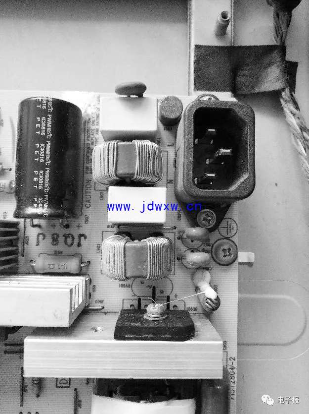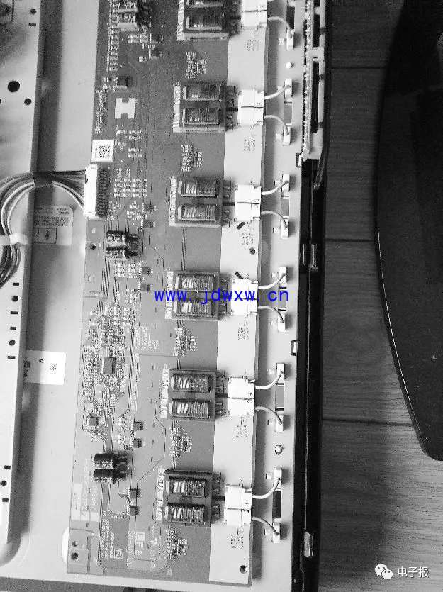 长虹LT32510液晶彩电很少出故障,但出故障后及时排除对使用者来说再好不过。下面就是笔者的维修实例,仅供参考。 检修过程:开机后电源指示灯不亮,用遥控开关机,无变化。打开后盖,初步判断电源故障。电源电路板实物如图1所示,电路图见图2。用万用表测C901一端无电压,测F901一端有市电压220V。焊开F901检测断路,换上F901,开机故障排除。 例二、故障现象:有声音,有背光,无图像 检修过程:开机有声音,无图像,能遥控,说明控制电路完好,估计故障在图像处理电路。假如电视长期使用后出现背光很弱,也会导致“无图像”。拔掉逆变器电路板的一个端子,有明显变化,7个端子拔掉(见图3),没有背光,确认该背光灯是好的。更换图像处理控制电路即逻辑板,无变化,维修陷入僵局。拔掉逻辑板输入插座,无变化。拔掉逻辑板输出端子2插座,出现半幅光栅,初步判断液晶控制板有问题,也就是负载出现过载,导致无图像。同时更换K3341TP板和k3342tp板(见图4),开机故障排除。 |