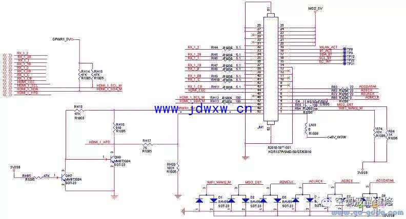 长虹ZLM60H-iS机芯液晶彩电电路结构 长虹ZLM60H-iS系列机芯液晶电视主要由电源电路、射频电路、音视频处理电路、模拟和数字音视频输入输出接口电路、图像变换处理电路、多媒体处理电路、伴音功放电路、系统控制电路组成,整机电路组成框图如下图所示(Q1FU、Q2FU、Q2N、D6000、U3): 另CHIQ2系列部分机芯增加了MEMC转接板,如Q2C系列,其机芯框图如下 Q2R则是用NT72333替代MST6M50DVC。 长虹ZLM60H-iS机芯液晶彩电之Fastboot控制电路DDR_CTRL用于开关快速开关机功能。 长虹ZLM60H-iS机芯液晶彩电之wifi-WakeUp控制电路WOW_EN用于开关WiFi-Wake功能。 Q2N因使用蓝牙、WiFi一体的模块,所以WiFi-WakeUp功能有模块自己控制,其该部分电路如下: 长虹ZLM60H-iS机芯液晶彩电之以太网唤醒控制电路WOW_EN同时可用于开关以太网唤醒功能。 长虹ZLM60H-iS机芯液晶彩电之HDMI1、MHL兼容电路长虹ZLM60H-iS机芯液晶彩电之Q2C、Q2R、Q2N升级模块电路长虹智能魔方采用HDMI协议与主机进行通信。 长虹ZLM60H-iS机芯液晶彩电之CI、CA兼容电路长虹ZLM60H-iS机芯液晶彩电之POWER_ON控制电路长虹ZLM60H-iS机芯液晶彩电之AVDD3V3电路![]() 长虹ZLM60H-iS机芯液晶彩电之配置电路长虹ZLM60H-iS机芯液晶彩电主板印制板布局及主要元器件位置示意图 |