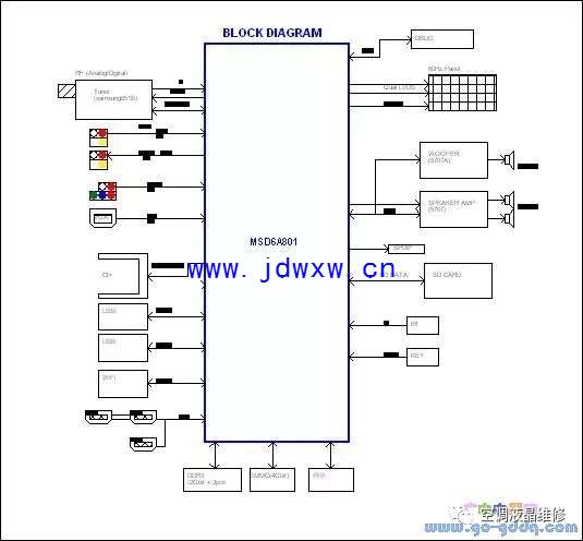 海尔K55U7000P液晶彩电(MSD6A801+DTMB机芯)信号部分流程图:海尔K55U7000P液晶彩电(MSD6A801+DTMB机芯)系统控制电路工作原理电源电路,晶振电路,复位电路,NORFLASH,EMMC,DDR,6A801及其附属电路组成了最小的系统,系统上电后5V_STANDBY待机电压经U2产生的3.3V_STANDBY电压加到U100,复位电路,FLASH块后,U100根据设置进入开机/待机模式.(该处设置在电视开启后,按遥控器上的"菜单"键,再按8893进入工厂菜单,其中的第三项:"poweronmode"设置:"on"为交流上电后开机,"off"为交流上电后待机.)系统设置为交流上电后开机时,6A801的C3脚输出高电平(3.3V),送到电源板输出12V电压送到机芯板,此时整个机芯板的电源都正常工作,从U100(J4)输出背光控制信号,打开背光;U100(B8)输出背光亮度控制信号;U100(K5)输出高电平电平打开屏线LVDS上的12V(通过Q1,Q48)控制板供电控制信号,整机便开始工作。海尔K55U7000P(MSD6A801+DTMB机芯)液晶彩电之电源电路整个机芯板的电源接口如附图,其中5Vstb只要上电即存在。+12V_NORMAL开机后才能有,维修机芯板时,需要先确定电源是否正常。 DC/DC转换电路 本机以TI54328为列介绍工作原理,此电路由U8-TI54328和外围元件组成的PWM开关电源。U8是开关控制器件,L41是蓄能电感。输出的5V电压是经R15,R14分压反馈送到U8(2)脚内部的控制电路进行PWM控制,以保证5V的稳压。当U8内部开关管闭合时,5V电源的电流流经L41的自感作用,电流逐步上升,并以磁能方式存储。此时自感电势方向是左正右负流过L41,电流对C33,C34充电,电容两端电压逐步上升,并向负载供电,当C33,C34两端电压超过到5V时送到U8的(2)脚FB端反馈电压使TI54328内部开关管截止,此时L41的自感电势左负右正。这个方向的自感电势正向电压向负载供电,当U8(2)脚反馈电压低预5V时内部开关管导通,输出稳压的5V电压,送到其他电路。 海尔K55U7000P(MSD6A801+DTMB机芯)液晶彩电之晶振电路此系统靠晶振电路提供时钟,用计数器或示波器测量晶振的两端(Y100的两端),即可测得如图的数据和图像。晶振的频偏应当控制在30PPM内。 海尔K55U7000P(MSD6A801+DTMB机芯)液晶彩电之复位电路电路如下图,开机时5V_standby电压一路经D100加在Q100的E级同时对C195充电,另一路经R209对C196充电由于R209阻值较大,所以Q100的E级比B级电压上升较快,B为低电平此时Q100导通,Q100的C级输出高电平给主芯片复位,当C196充满电时,B极电压上升Q17由导通变为截止,C极输出电平为地自此主芯片复位完成。 维修提示:电视通电220v之后能测到Q100的C极有一个瞬间的高电平(100ms左右),之后C极就一直是低电平。接通电源后测Q100的C级应为零假如不为零可判定不开机原因是复位电路引起。 海尔K55U7000P(MSD6A801+DTMB机芯)液晶彩电BOOT程序存储器FLASH模块本机FLASH块采用MX25L1605,他是一个串行FLASH存储器,具有写保护功能,MX25L1605支持标准的串行接口(SPI),SPI时钟频率达到80MHz,MX25L1605能通过写保护作为软件保护模式。在正常开机状态下,U100(6A801)集成块内CPU一旦得到供电电压,复位信号和振荡电路工作后,程序存储器U103挂接在U100(C1,D3,D1,D4,E4)SPI总线上,U100(C1)脚就会发出CLK时钟脉冲,在(D4)脚片选信号SPI_CSN控制下,通过两根数据线SPI_SDI,SPI_SDO与U103进行数据通讯。(注本机电路有NC标志的表示没有此元件) ![]() 海尔K55U7000P(MSD6A801+DTMB机芯)液晶彩电主程序存储器emmc模块本机主程序是存储在emmc存储器中,emmc假如有故障,电视将不能开启,通过DEBUG工具连接的打印信息只能显示到BOOT过程,会出现提示错误信息。(注本机电路有NC标志的表示没有此元件 海尔K55U7000P(MSD6A801+DTMB机芯)液晶彩电之遥控指示控制信号电路当此机的遥控接收头输出控制信号送到U100 6A801(M4IRINT)脚CPU接收到指令信号便开始工作由U100(G9)输出高电平使指示灯闪烁,电视待机时遥控头上的红色指示灯应当常亮(H9000机型使用2.4G的wifi遥控接收头除外)。 海尔K55U7000P(MSD6A801+DTMB机芯)液晶彩电之开/待机控制电路当电视工作在待机状态时,U100(C3PWR-ON/OFF)脚输出的PWR_ON/OFF控制电压为低电平,控制电源板12V没有输出,当电视正常开机时,U100(C3PWR-ON/OFF)脚控制电压为高电平,5V待机电压经R5,R6控制电源板12V有输出。(注本机电路有NC标志的表示没有此元件) 维修提示:待机时机芯只有5Vstb 和3Vstb,开机后通过开机电路12V 将会被供给,此时整个板子上的电压都应正常,假如还是只有5Vstb 和3Vstb,需要用万用表测试R6,R41 处,该处应该为高电平; 海尔K55U7000P(MSD6A801+DTMB机芯)液晶彩电之背光启动控制电路此机开机时,U100(J4)脚VBL_CTRL输出低电平使Q45三极管截止,5V_standby电压经R24,R48的4.5V电压送到背光驱动电路,启动背光驱动电路工作,为背光灯提供驱动脉冲信号,所以Q45及相关电路有故障会导致背光驱动电路停止工作,出现无光栅,无图像,有伴音的故障。(注本机电路有NC标志的表示没有此元件)。 |