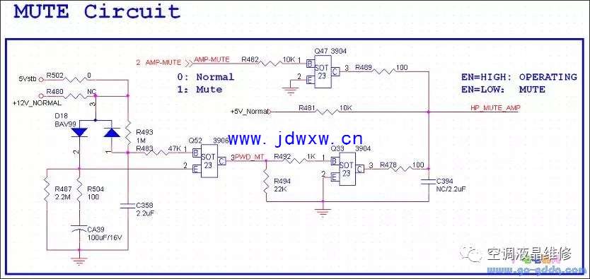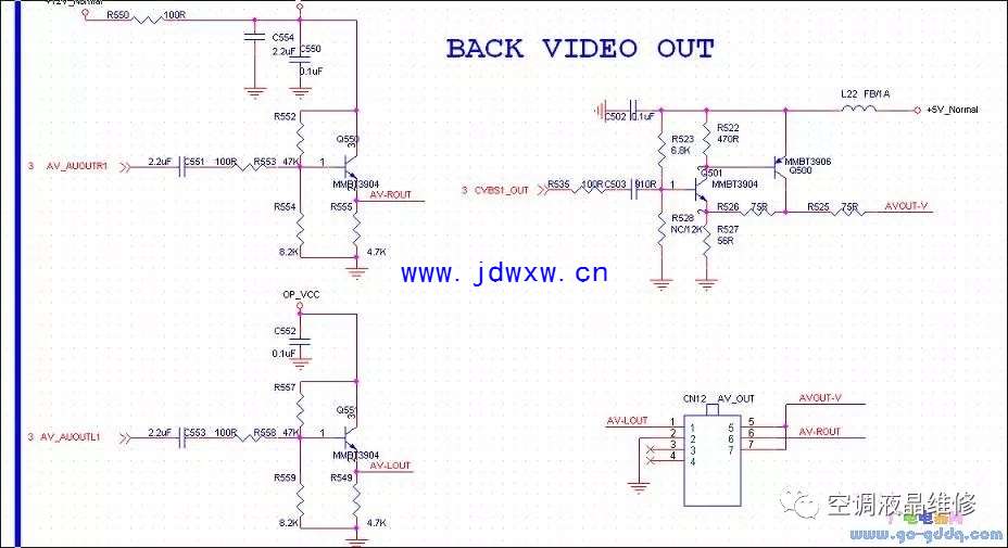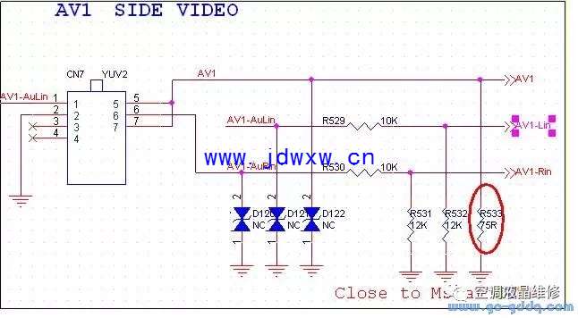 维修提示:此机开机后打印信息正常,但是背光灯不亮时,需要查看该处; 海尔K55U7000P(MSD6A801+DTMB机芯)液晶彩电之背光亮度控制电路此机开机时,U100(B8)BRI_ADJ脚输出的亮度控制信号经R37,Q46放大经CN16(8)脚去电源板组件上的背光亮度控制电路。 维修提示:此机开机后调节背光亮度,发现没有变化,需要查看该处,将亮度从0 变为10 时,用示波器检测R40,正常应该是有方波,方波的占空比由小变大; 海尔K55U7000P(MSD6A801+DTMB机芯)液晶彩电之到屏电源控制电路此电路中Q1为控制管,Q48为电子开关,开机时,主芯片U100(K5)脚PANEL_ON/OFF输出高电平Q1开启,12V电压经R29,R31分压使Q48导通12V电压经Q48源级和漏极,经LVDS插座送到屏上的控制板,作为控制板的工作电压。 维修提示:屏线(LVDS线)假如插不好会导致12V和地短路,Q48会烧毁。 海尔K55U7000P(MSD6A801+DTMB机芯)液晶彩电之高频调谐电路该机芯的高频调谐器是数字信号模拟信号为一体的高频头。采用中频差分输出提高抗干扰能力,工作条件有5V电压,高放AGC电压,SDA和SCL总线信号。 海尔K55U7000P(MSD6A801+DTMB机芯)液晶彩电之静音电路电视在交流上电时,5Vstb一直存在,Q52的E极为高电平,4.3V左右,R483左端为低,经过一段时间对C358充电才会变高,Q52为PNP型三极管,导致在R492端为高电平,Q33为NPN型三极管,此时为开启,导致R478右端为低电平,达到了开机MUTE的目的。紧接着C358的充电,R483左端变为高电平,Q52,Q33都变为截止,该电路的MUTE功能便失效。 此机的伴音功放采用的集成块是U1110YAMAHA174和U1111YAMHA176。其中YAMAHA174的功能是中高音输出,YAMHA176的功能是重低音输出。YAMAHA174集成了10W+10W功率放大器,YAMAHA174集成了一个10W功率放大器。 海尔K55U7000P(MSD6A801+DTMB机芯)液晶彩电之AV信号输入电路此电路中D120,D121,D122是限幅防静电尖峰脉冲干扰,现在的芯片防静电干扰的元件设计在主芯片内部,所以电路中没有安装此元件,电阻R531,R532,R533是阻抗匹配电阻,C169是高频滤波电容,如AV输入对地75欧姆,伴音输入对地12K欧如出现故障,直流测量阻值不对可能是主芯片有故障,此通道电容C169漏电会导致AV无图像。 海尔K55U7000P(MSD6A801+DTMB机芯)液晶彩电之AV信号输出电路该机AV/TV视频信号经U100主芯片AC4脚输出经Q500,Q501,组成复合放大电路放大后从CN12转AV输出,音频信号经过Q550,Q551放大后按左右声道输出 海尔LE42PUV1(RTD2648机芯)液晶彩电软件升级调试说明RTD2648 SOFtware Update SOP方式一 用Debug Board,且接上TV後开放超级终端. 1.TV先AC断电 2.插入U盘 3.在超级端端按TAB键不放 4.AC上电 5.看到“reading install.img”後才可放开TAB键 6.烧录好之後会自动重启。 方式二 1.TV开机. 2.插入U盘 3. 进入CSM Menu (Menu+456987+回看) 4. 选择USB Update 5.选择Image档 6.TV会重启并升级,升级后会自动开启。 海尔K55U7000P(MSD6A801+DTMB机芯)液晶彩电之HDMI信号电路6A801机芯有3个HDMI接口,3对数字信号和1对时钟信号其实就是电压差分的TDMS格式的信号,图像信号与伴音信号均采用此种数字编码方式传送,具有抗干扰强,传送速度快等特点,所有信号都输入U100主芯片,他们的对地电阻都相同,如出现工作时测量对地电阻不相同,可判定是信号通道有问题。 海尔K55U7000P(MSD6A801+DTMB机芯)液晶彩电之USB信号电路6A801方案共有2个外置的USB接口,其中CN18接口还具有给IPHONE充电的功能。在6A801内部有CN19插座,该插座也是一个USB接口。6A801方案对该接口有两种处理:1)CN19连接到wifi模块;2)CN19连接到USB_HUB模块。 USB插座有4路连接,其中(6)、(5)、(4)脚接地,(1)脚供电,(2)、(3)脚是数据时钟信号,本机USB端口是2.0版本支持RM,RMVB视频格式。 ![]() 海尔K55U7000P(MSD6A801+DTMB机芯)液晶彩电之VGA信号电路VGA三基色信号直接进入U100(V1,V3,T2)脚,VGA_HS,VGA_VS信号是三基色信号显示的行场同步信号,同时也作为VGA的识别信号,二者缺一会导致VGA画面无图像,当VGA显示时通过VGA(12)(15)脚送来总线信号读取在U10内存储器中的DDC屏参数,同时也可以通过此路总线或J105的TX,RX信号并接输入主芯片,实现对主芯片软件升级或通过工装进行软件升级。 海尔K55U7000P(MSD6A801+DTMB机芯)液晶彩电之网络接口电路 6A801方案的网络PHY内置,网络信号和网络接口之间有网络变压器连接。 海尔K55U7000P(MSD6A801+DTMB机芯)液晶彩电之CA卡插槽电路6A801方案可以不使用机顶盒而直接接入有线信号观看数字电视节目,因为有CA卡插槽电路。通过插入CA大卡(内插CI小卡)可以解扰数字信号。 各个地方的信号加密方式不同,导致使用不同厂家的加密卡,CA卡和CI卡必须匹配,必须使用当地广电指定或销售的卡。 |