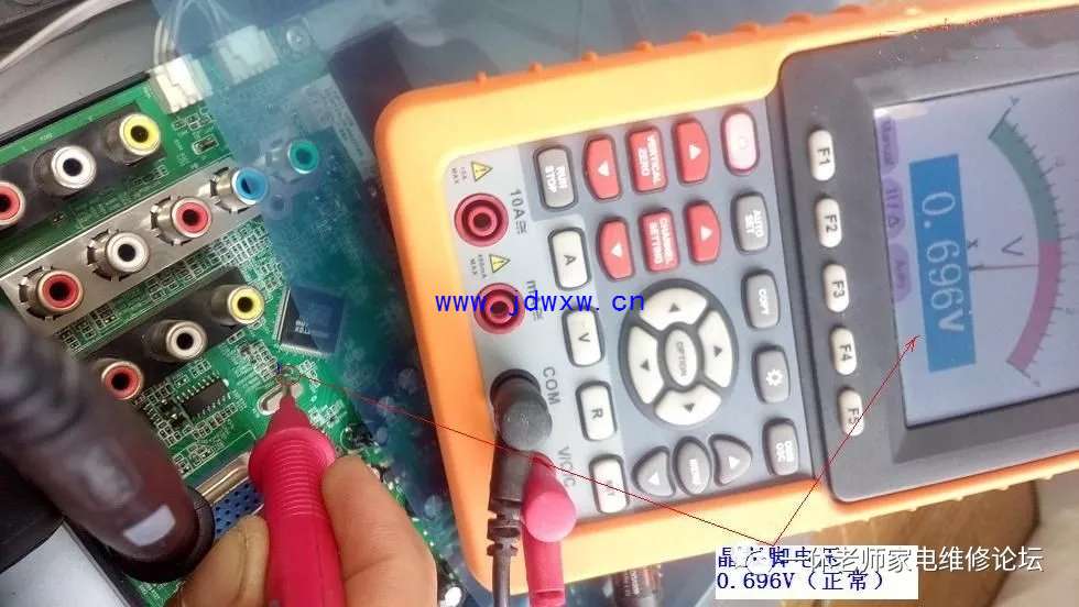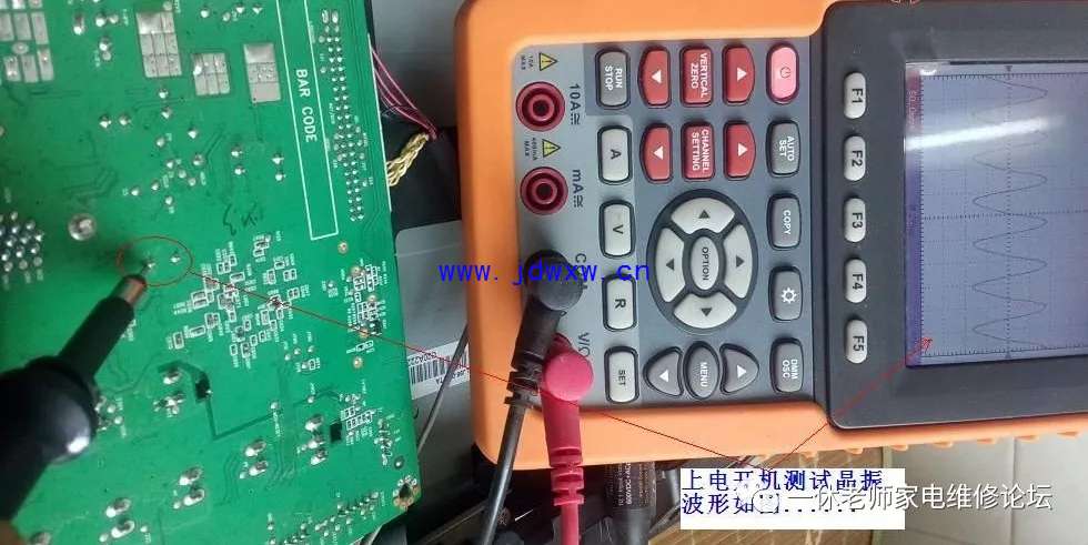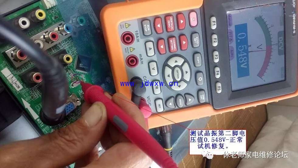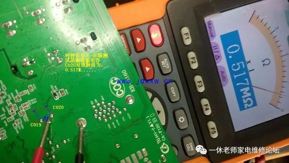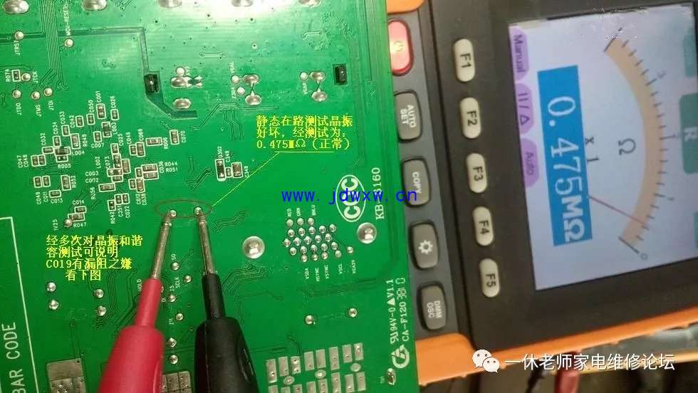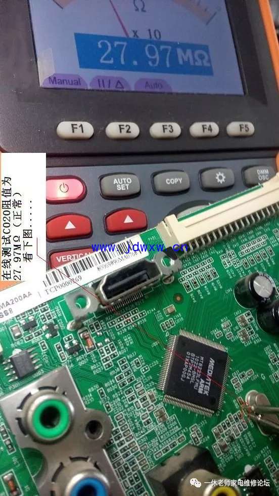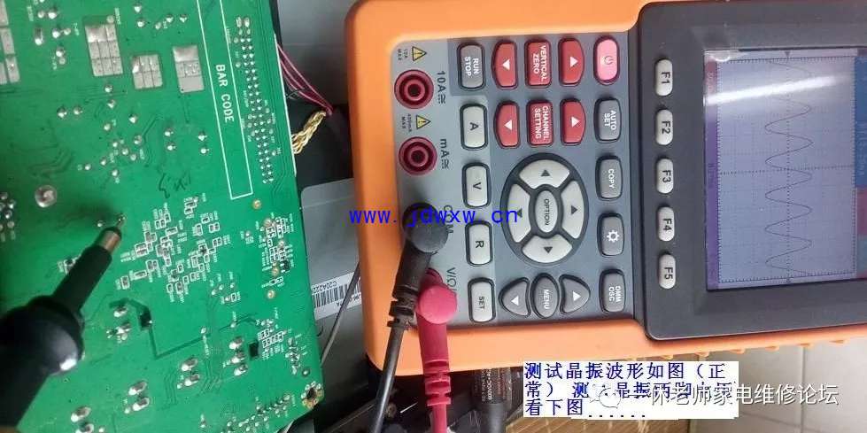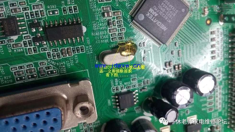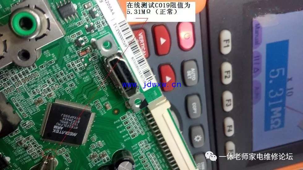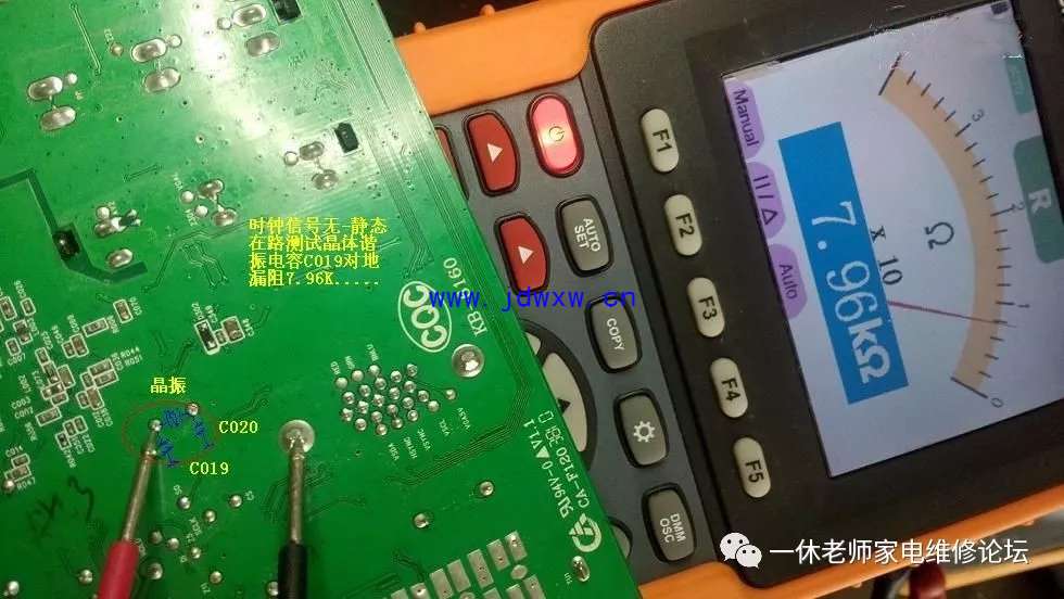 机型:TCL L37F11 触摸主控芯片和其他芯片温升正常......怪事儿,先决条件、五大要素:复位(有)要么二次怎样开机呢?;供电(有)正常;时钟(待测);数据(无);主查时钟/数据信号有无,测试主板与逻辑板数据连接插件参考点供电正常均正常,拔下插头测试电压值正常,用示波器验证波形,发现时钟信号(无),数据信号无需测试(肯定无、因它们是相互协调的)。返回主板晶振电路,测试晶体谐振电容C019对地漏阻为7.96K,去除正面覆盖晶体电容的胶后,测试正常了。主查图示: |