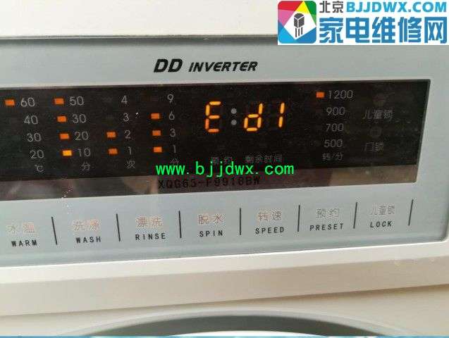 接修一台三洋XQG65-F9918BW滚筒洗衣机,开机一会后显示ED1。ED1指的是--主控与变频通讯异常!