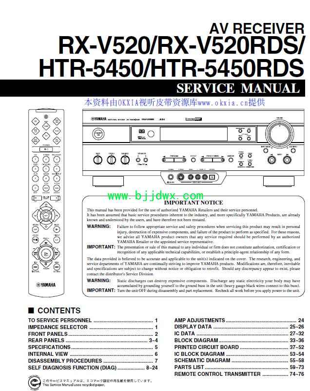 YAMAHA 雅马哈HTR-5450-RX-V520功放机维修手册图纸。
