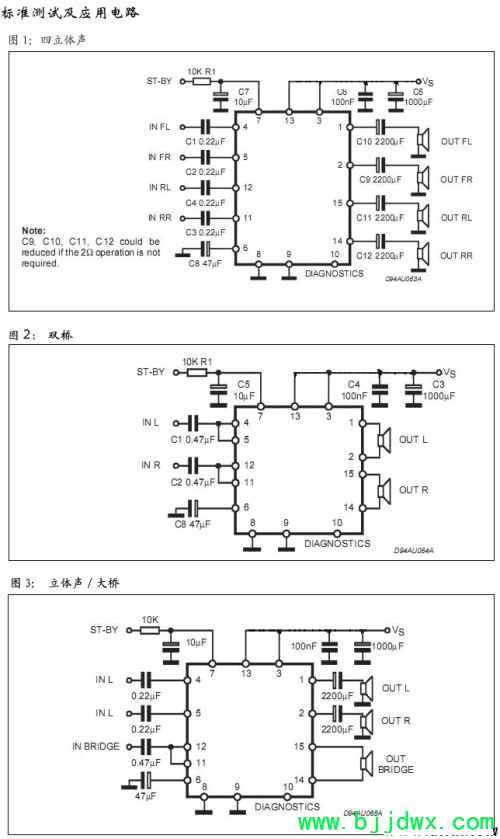 TDA7850是一个突破MOSFET技术AB类音频功率放大器Flexiwatt27包装设计的高功率车收音机。完全互补的P-Channel/N-声道输出结构,可以实现轨到轨输出电压摆幅,高输出电流和最小化的饱和度损失在汽车音响领域树立了新的动力引用,具有无与伦比的失真性能。- 4×50W/4Ω最大,– 4 x 30W/4Ω @ 14.4V, 1KHz, 10%;- 4×80W/2Ω最大,– 4 x 55W/2Ω @ 14.4V, 1KHz, 10%;MOSFET输出功率级,优秀2Ω驱动能力,Hi-Fi音响类失真,低输出噪声,ST-BY功能,静音功能下automute分钟,电压检测低外部元件数:内部固定增益(26分贝)无需外部补偿无自举电容,在船上0.35A高侧驱动器。