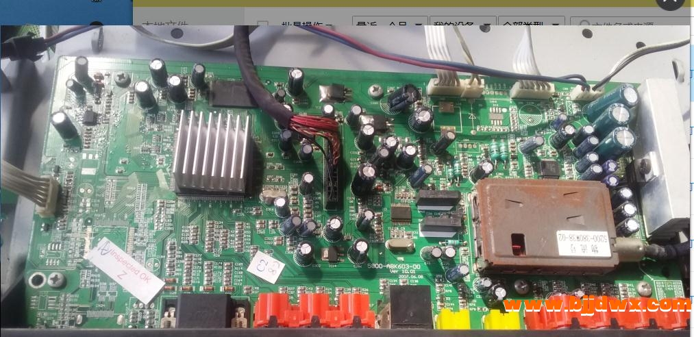故障:故障是:开机2-3分钟显示蓝屏按键失灵,遥控器有时可以开关机,有时候没反应!电源正常!处理结果:主芯片脱焊!补焊主芯片机器恢复正常!原机数据