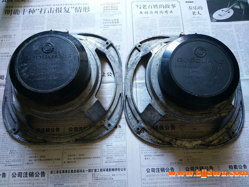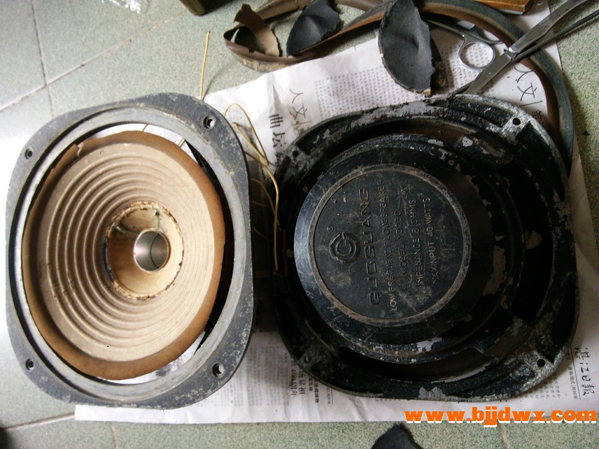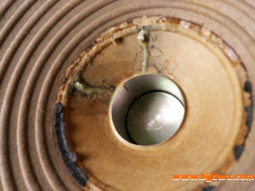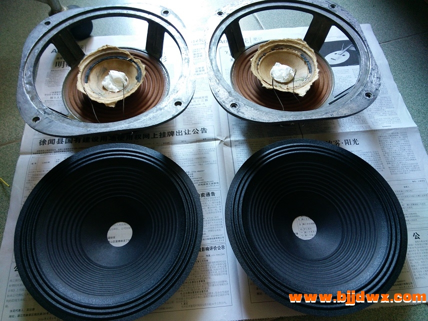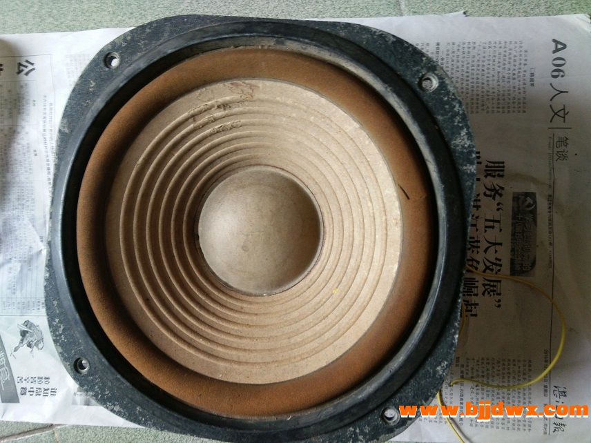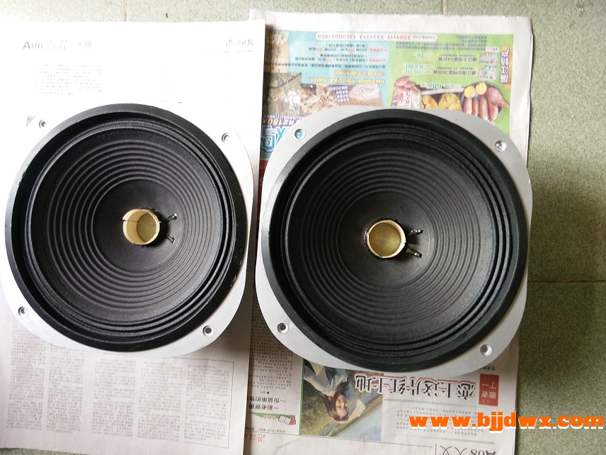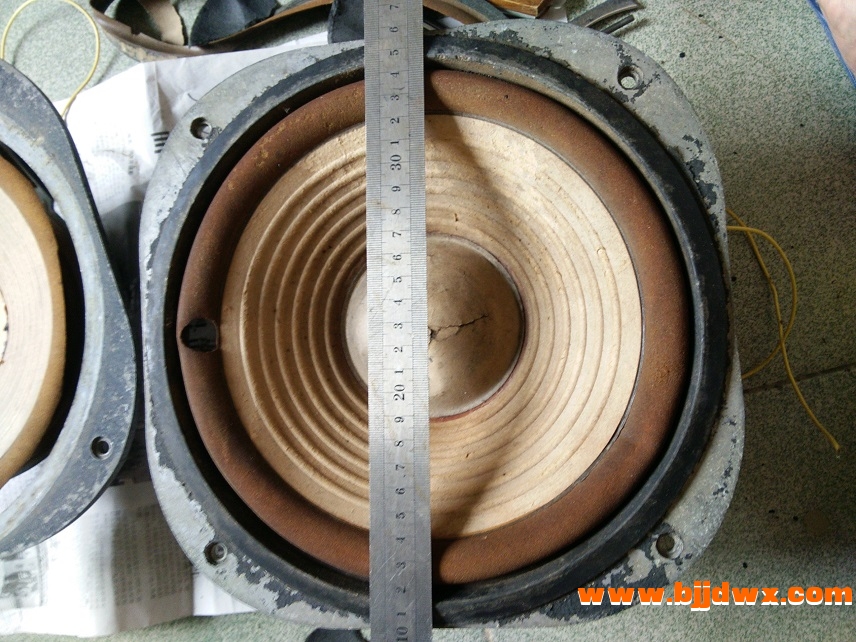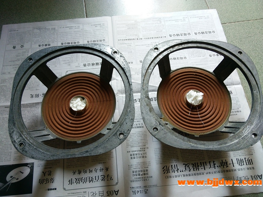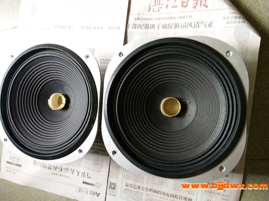 该对喇叭曾约22年前更换音圈,近来在用另一对音箱喇叭胶水脱落顺便在淘宝买对10寸布边纸盘和防尘盖等更换这对喇叭备用,这对喇叭音圈直径约39mm.