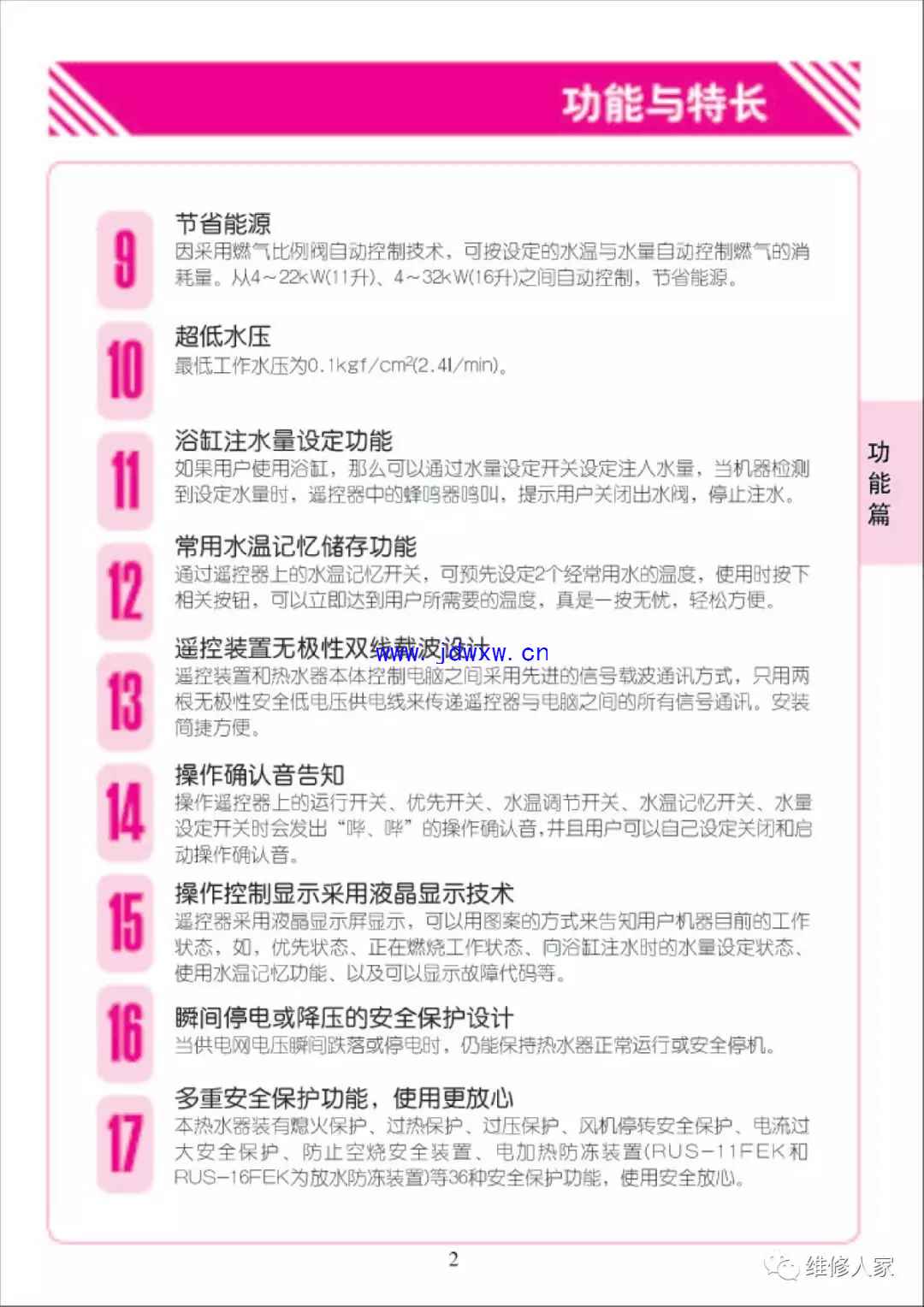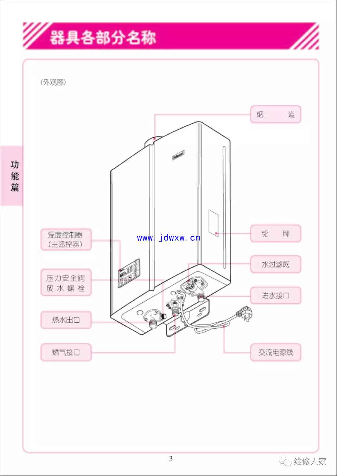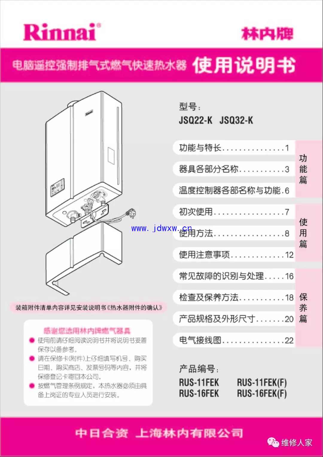 林内牌燃气热水器使用维修手册: