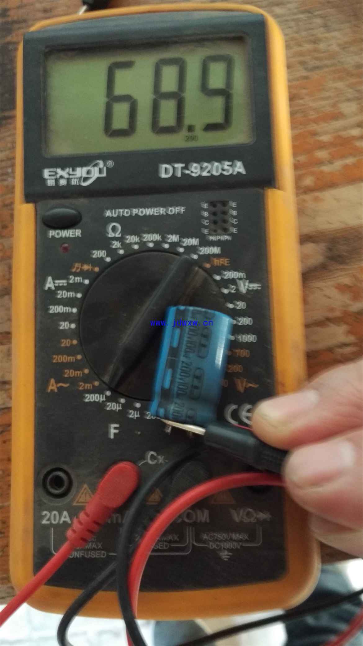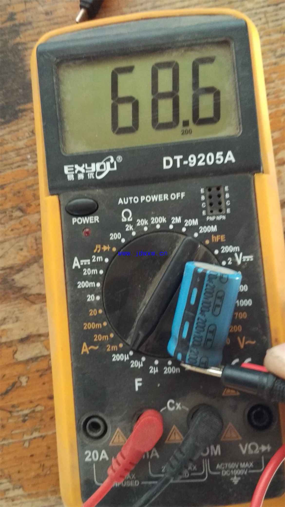 今天修了一台康佳crt21寸大屁股故障现象是图像抖动,伴有图像缩小,边沿锯齿状,果断换掉+B电容,试机一切正常,维修图片没有拍,大家看看这个电容外观没有任何变化,容量已经缩小到不足原容量的1/2。