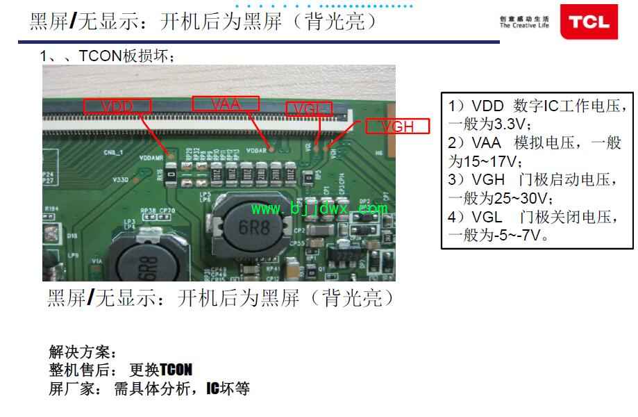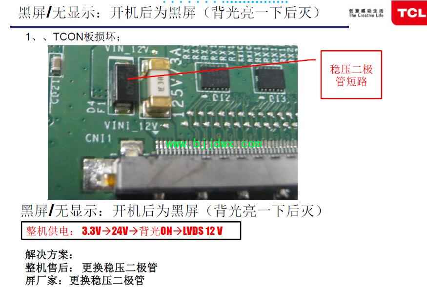 TCL液晶屏常见不良及修复方法: