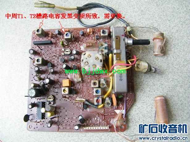 用铜拖线吸尽各脚焊锡,小心拆下波段开关,再小心逐步分解,拆开里面,几乎让人傻了眼,里面8组开关,40个脚几乎全是黑乎乎的,滑动铜锁片已有两三个已经老化得不能再用。发黑的脚位用木碳擦洗后,显出银白色,可是滑动铜锁片却怎么也搞不好了。拆了几个国产收音机的波段开关,里面的滑动铜锁片因结构尺寸不一样而无法使用。