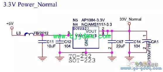 海信LED42K11P(MST6i78机芯)液晶彩电电源系统之33V_Normal电路系统3.3V采用了双layoutN5和N4,实际使用的为N5,即AP1084-3.3V。两者差别封装不一样,N5的温升更好一些,但价格稍贵。