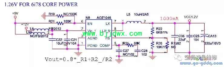 海信LED42K11P(MST6i78机芯)液晶彩电电源系统之VCC1.2V电路MST6i78核电采用DC-DC通过12V转换而来,1A左右的大小。用于MST6i78的内核使用。此电压理论值为1.26V,实际出DC-DC后设计为1.3V左右,到芯片管脚为1.27~1.28V左右。注意到芯片管脚电压一定要大于1.26V,低于的话会造成系统死机、重新启动等故障。
