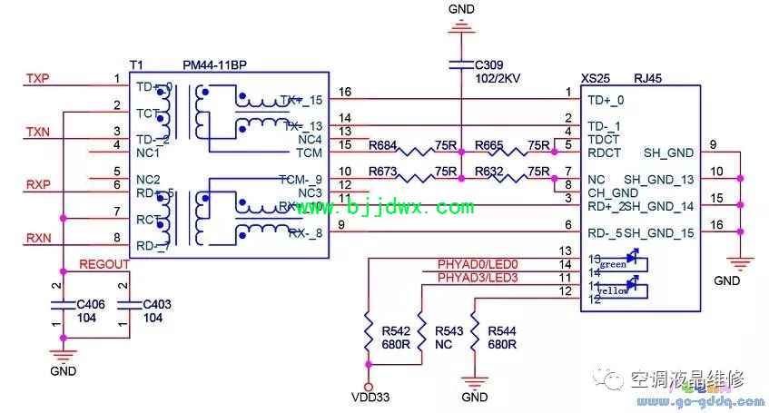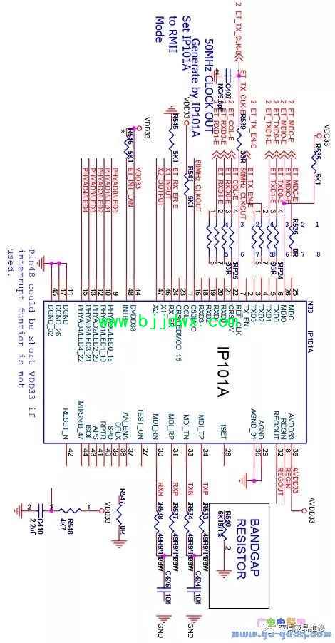 海信LED42K11P(MST6i78机芯)液晶彩电之网络接口电路 6i78集成了MAC,但PHY需要外置。系统采用了IP101A做为系统的PHY接口芯片,供电为3.3V,外部晶体G4为25M。