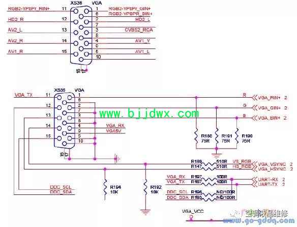 海信LED42K11P(MST6i78机芯)液晶彩电之VGA接口电路 通用的VGA接口电路,声音和高清复用。注意通过VGA接口的PIN4和pin11可以实现烧写MBOOT,监控打印信息等。