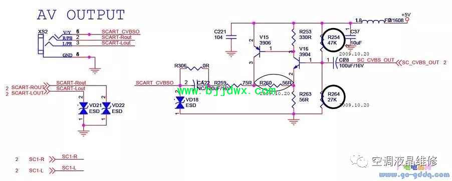 海信LED42K11P(MST6i78机芯)液晶彩电之AV输出接口电路 常规的AV输出放大电路。