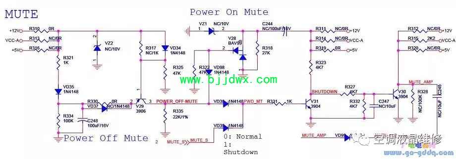 海信LED42K11P(MST6i78机芯)液晶彩电之开关机静音电路通用的开关机静音电路,注意AV音频输出的静音控制也是通过此电路实现,即MUTE_602。