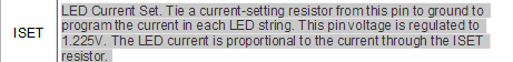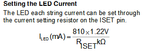 LED每串的电流可以通过设置在ISET引脚的电流设置电阻