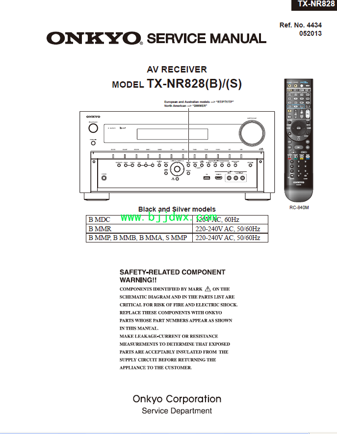 安桥TX-NR828 AV功放图纸或者维修手册: